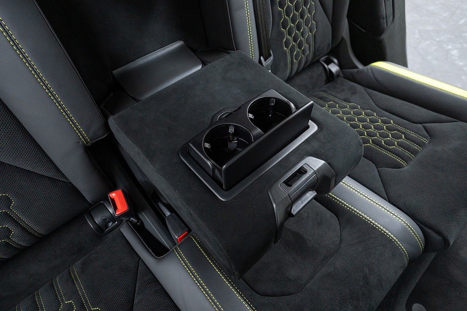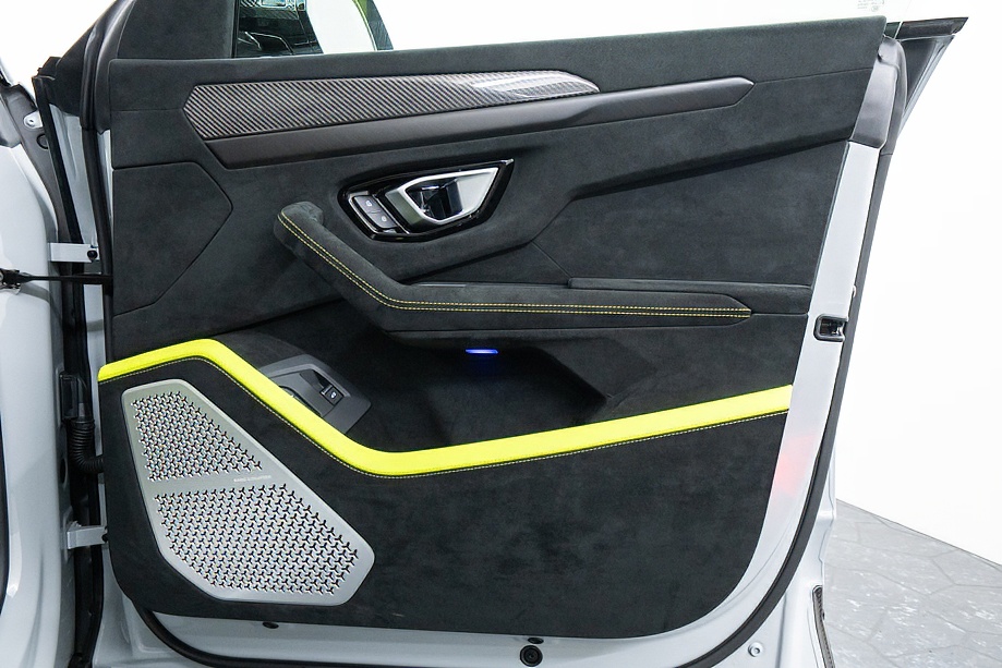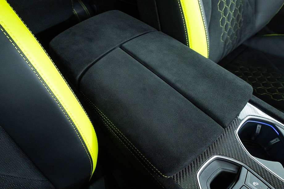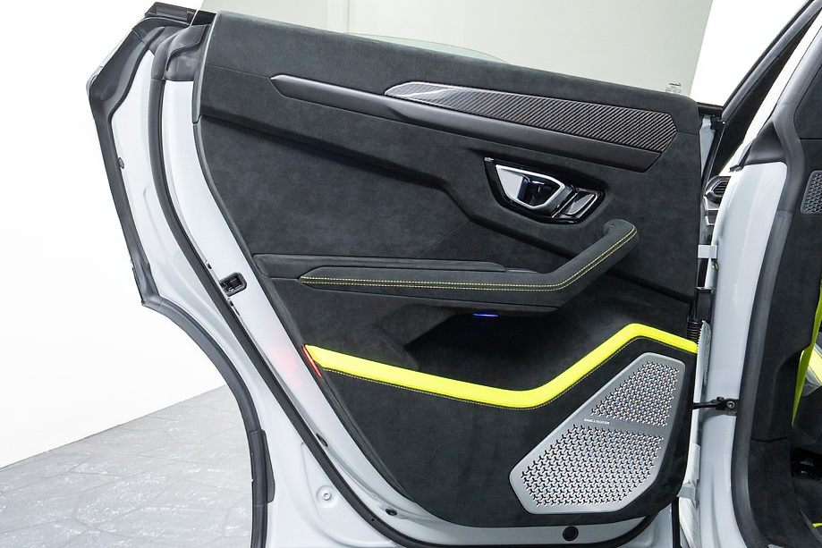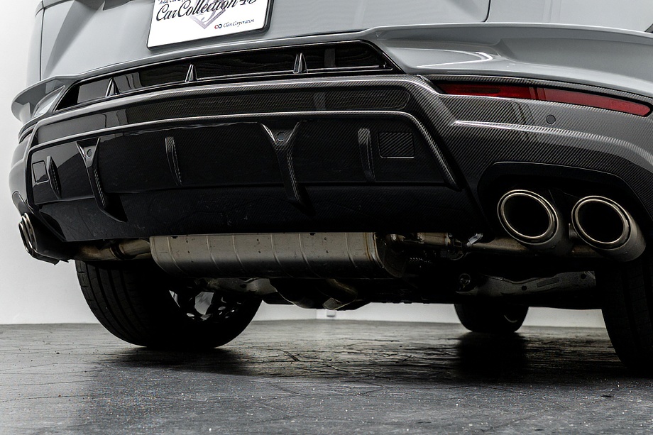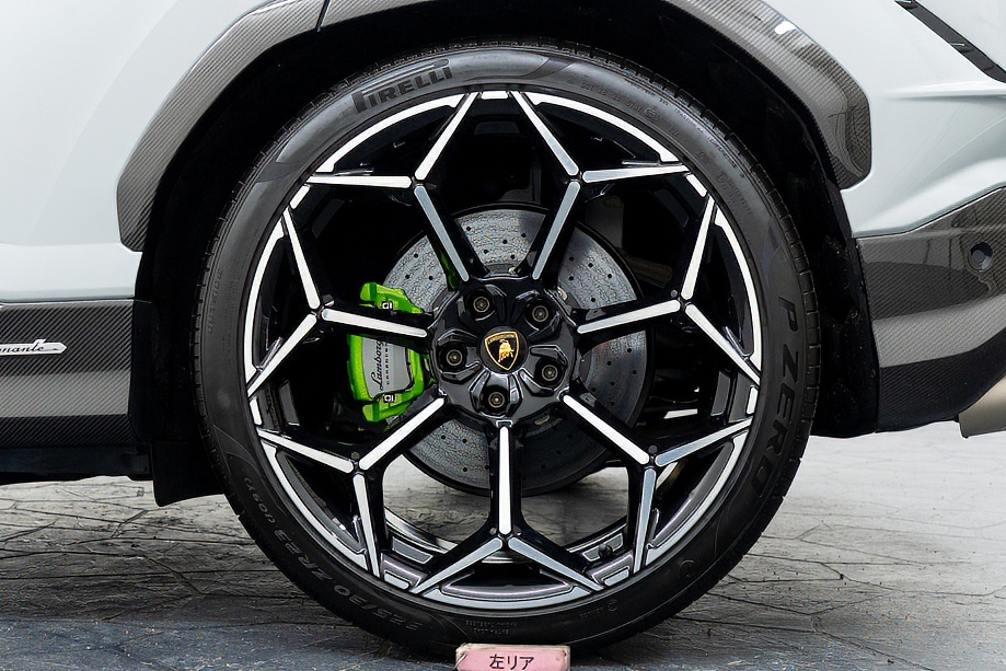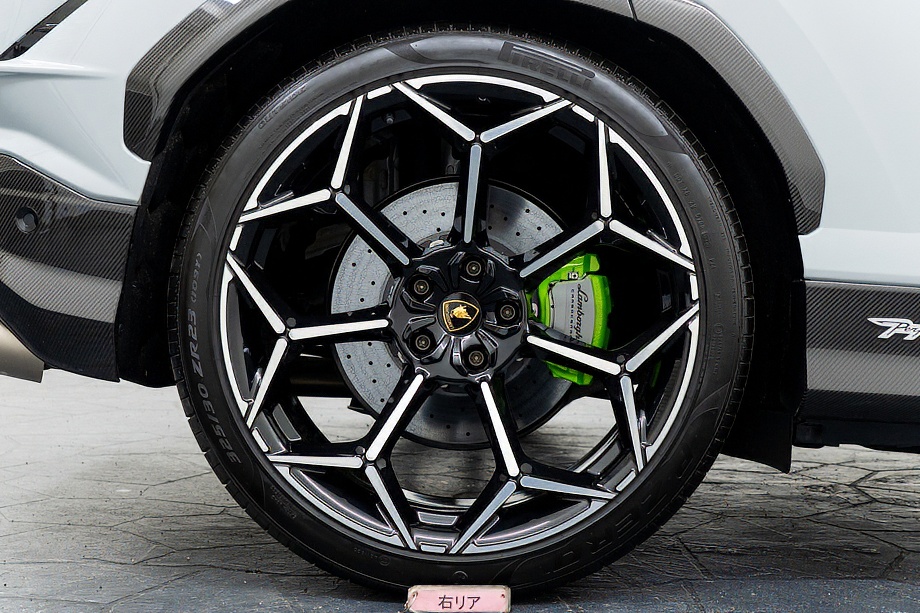 エクステリアはフルエクステリアカーボンパッケージを纏い、機能美と迫力を両立。純正23インチ ダイヤモンドフィニッシュ シャイニーブラックホイールにTitanium Wheel boltを組み合わせ、足元から特別感を演出します。そこに映えるグリーンキャリパーと、強力かつ安定した制動力を誇るカーボンセラミックブレーキ。視覚的な美しさと本質的な性能が、高次元で融合しています。