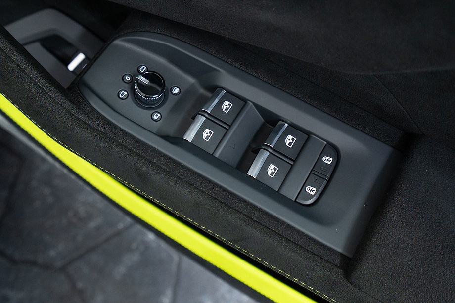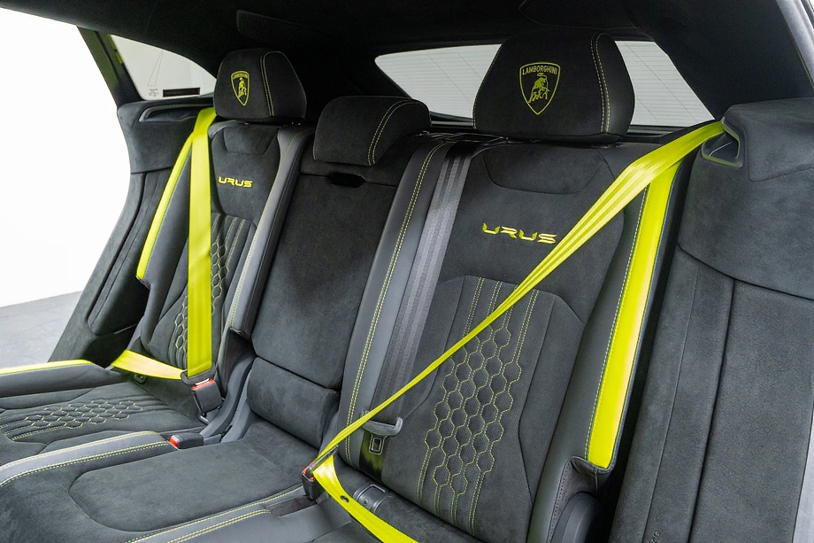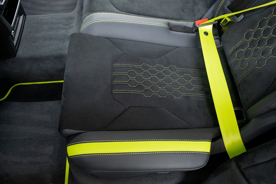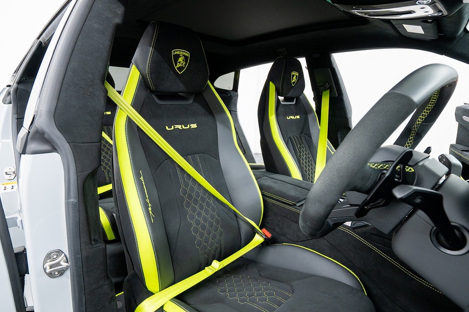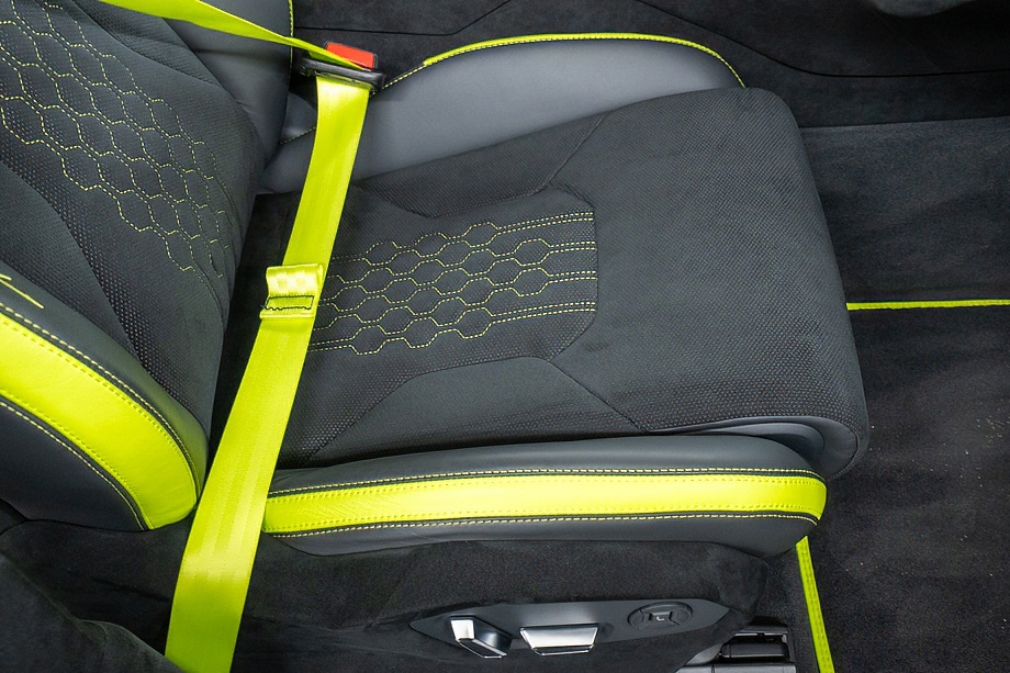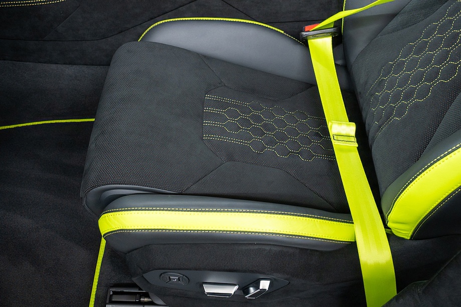 室内に足を踏み入れると、グリーンアクセントインテリアとBicolor Sportivo Performante trimが生み出すコントラストが印象的です。カラードシートベルトやOptional stitching on steering wheelといったディテールが、オーナーの感性に寄り添う上質な演出を施しています。