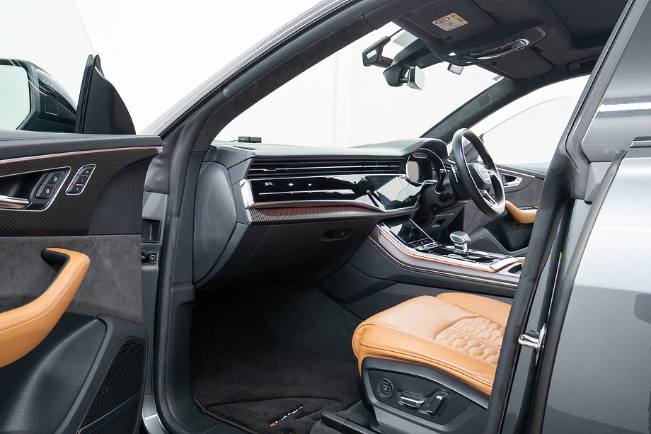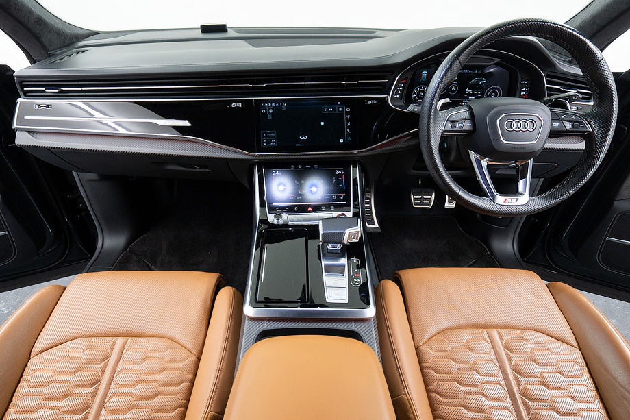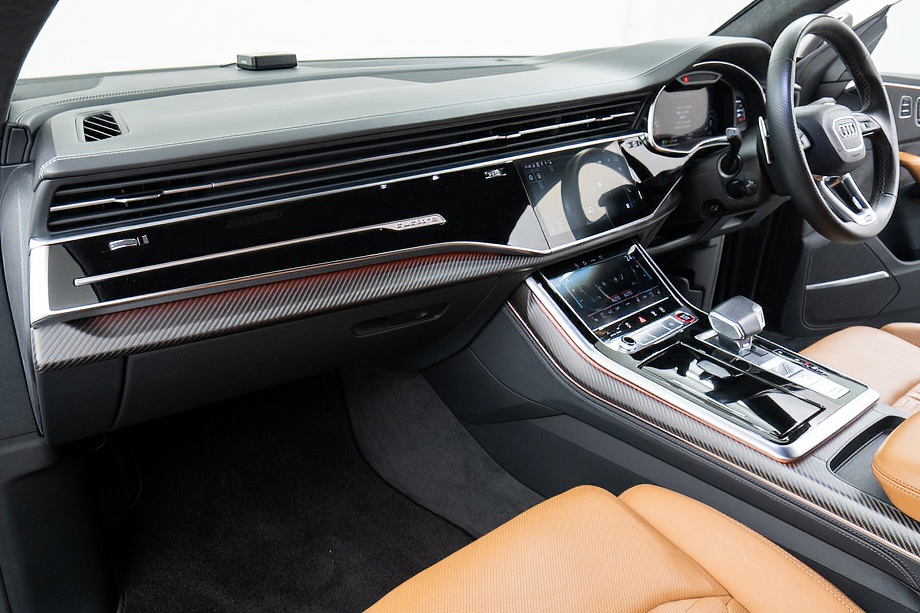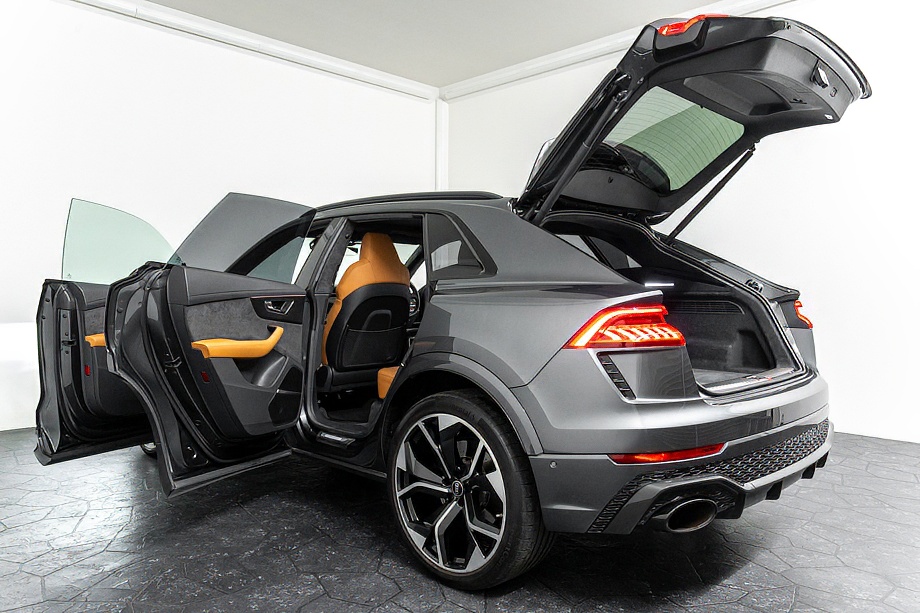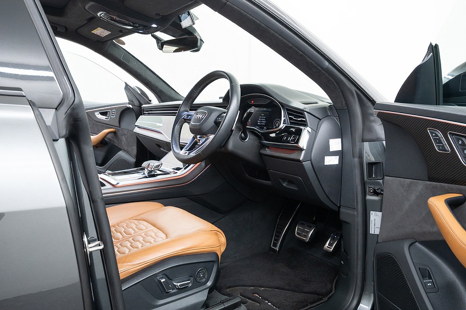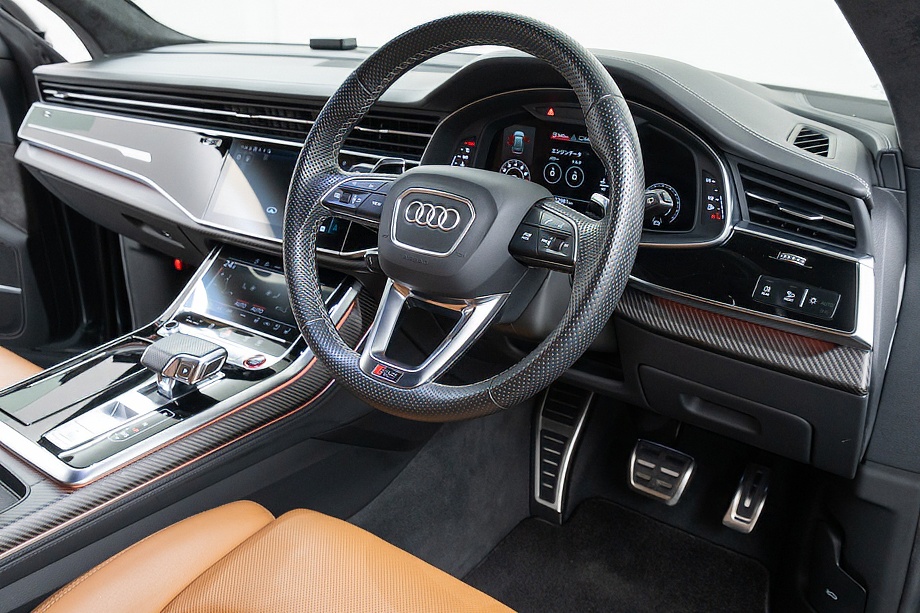 アウディ RSQ8 正規ディーラー車 カーボンスタイリングPKG ブラックスタイリングPKG RSスポーツエグゾースト パノラマサンルーフ デコラティブカーボンパネル 純正23インチホイール ブラウンレザー シートヒーター&ベンチレーション デイトナグレーパールエフェクト令和3年3月