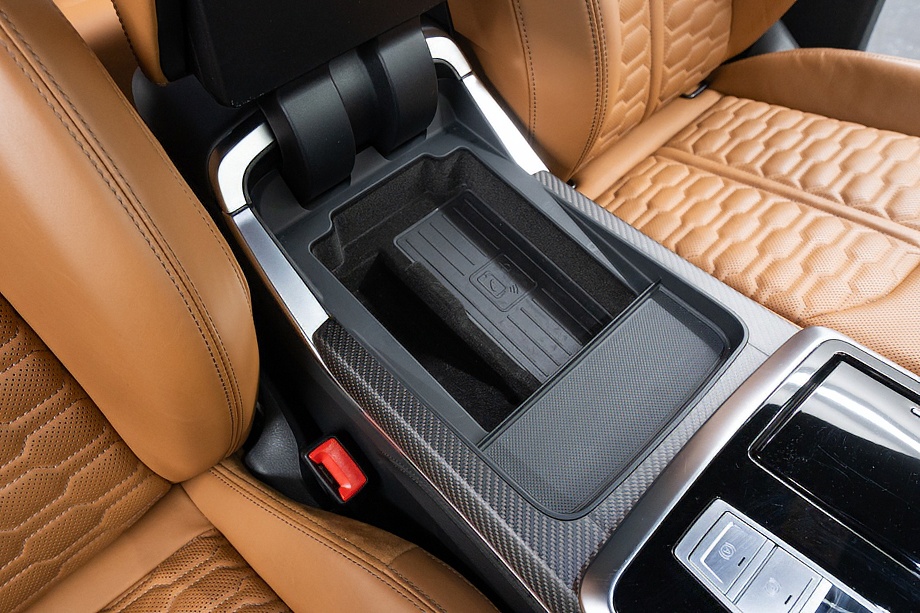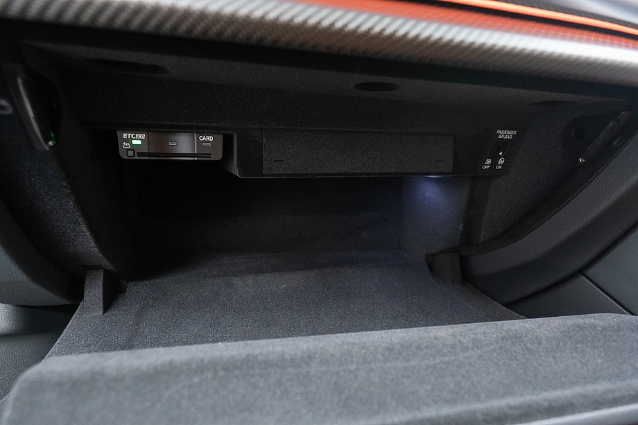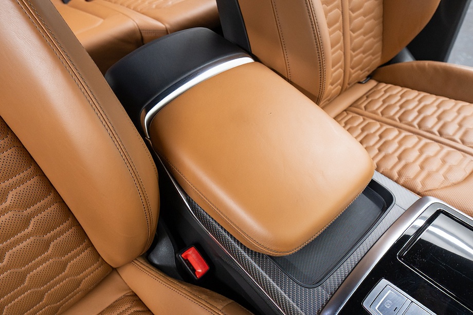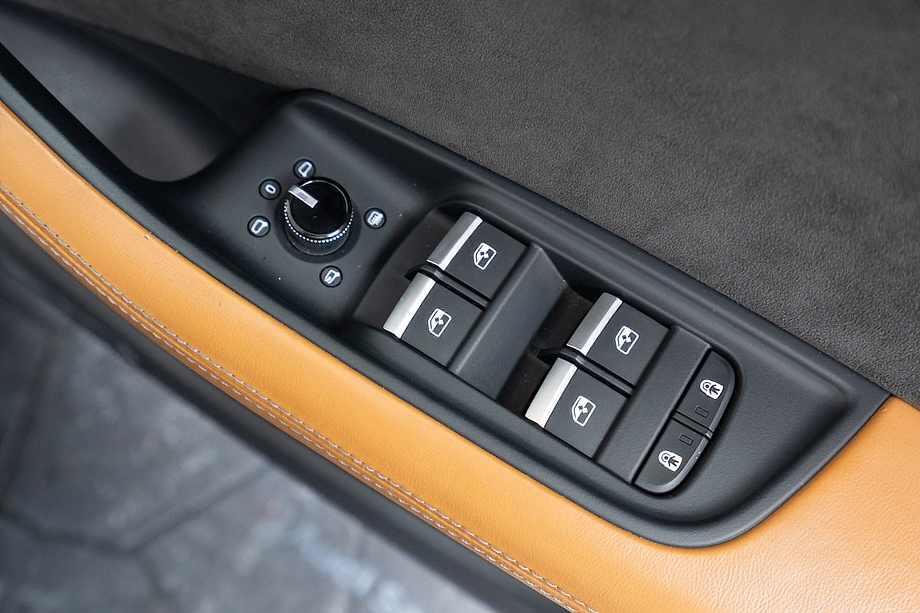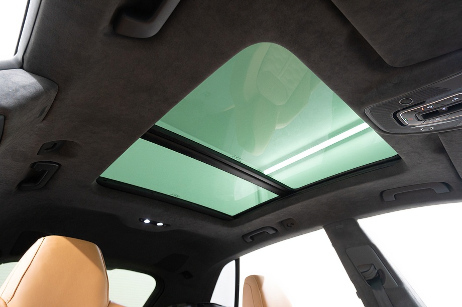 インテリアに目を向ければ、上質なブラウンレザーシートが迎えてくれます。シートヒーター&ベンチレーション機能により、夏も冬も常に快適。長距離ドライブでも疲れにくく、同乗者にも優雅な時間を提供します。さらにデコラティブカーボンパネルがスポーティな緊張感を演出し、パノラマサンルーフが室内に開放感あふれる光を取り込みます。走りとラグジュアリー、その両立を実感していただける空間です。