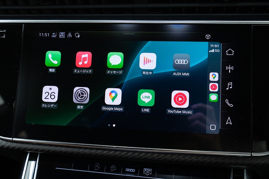 純正ナビゲーションは、フルセグTV・ミュージックサーバー・Bluetooth・USB・SDに対応し、さらにApple CarPlay・Android Autoもご利用可能。日常の利便性も非常に高く、ビジネスからレジャーまで幅広いシーンで活躍します。