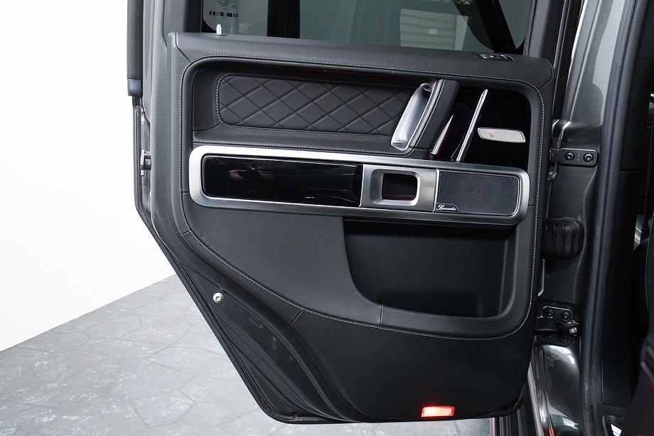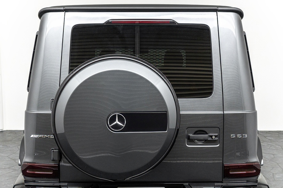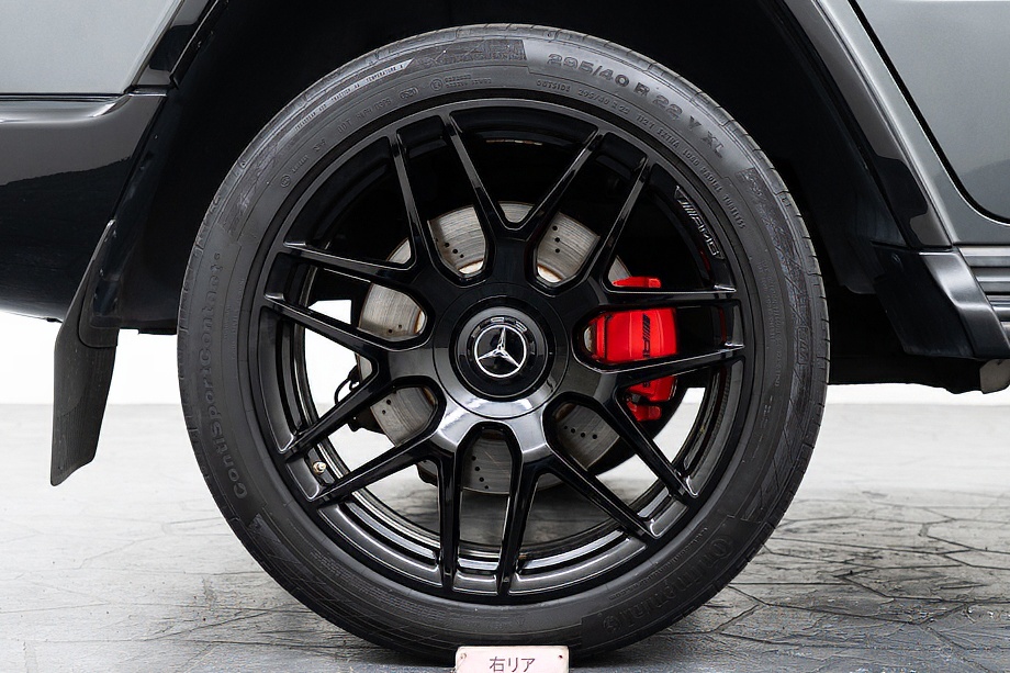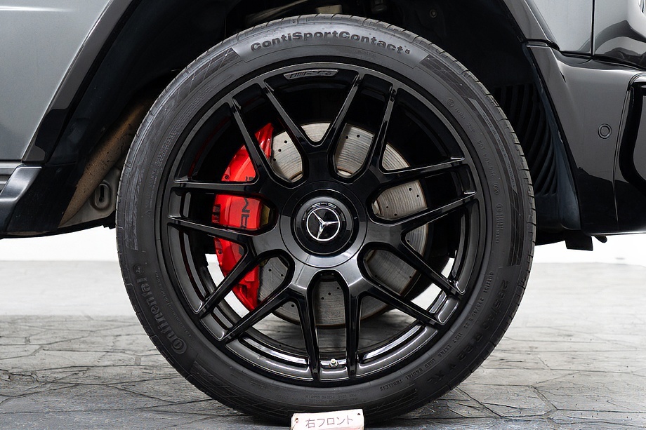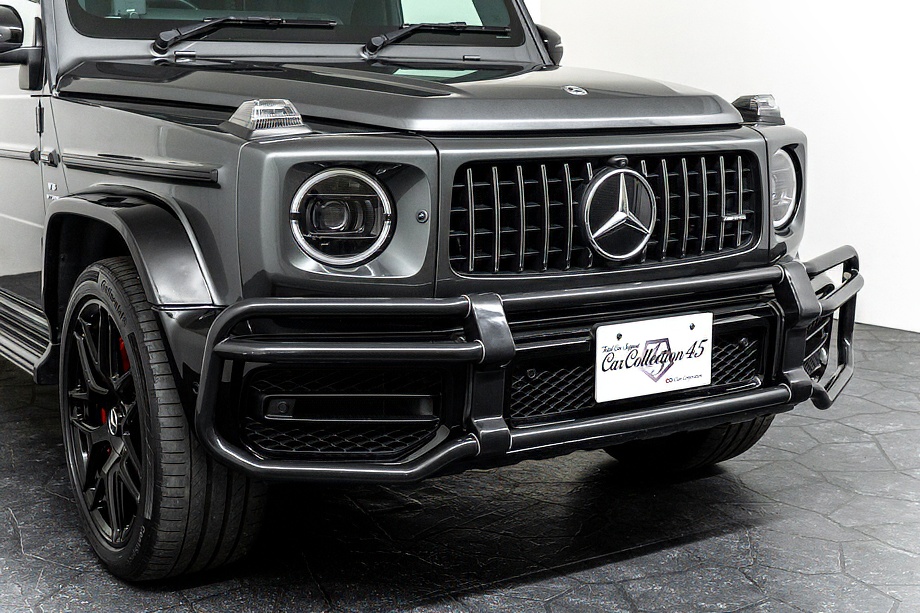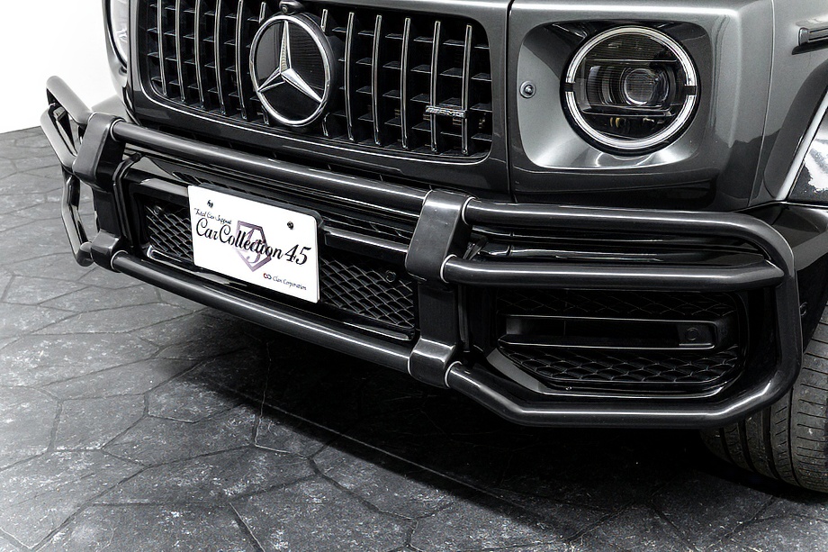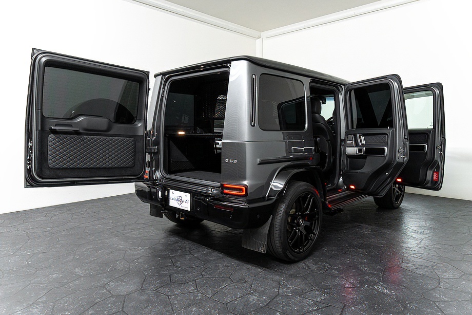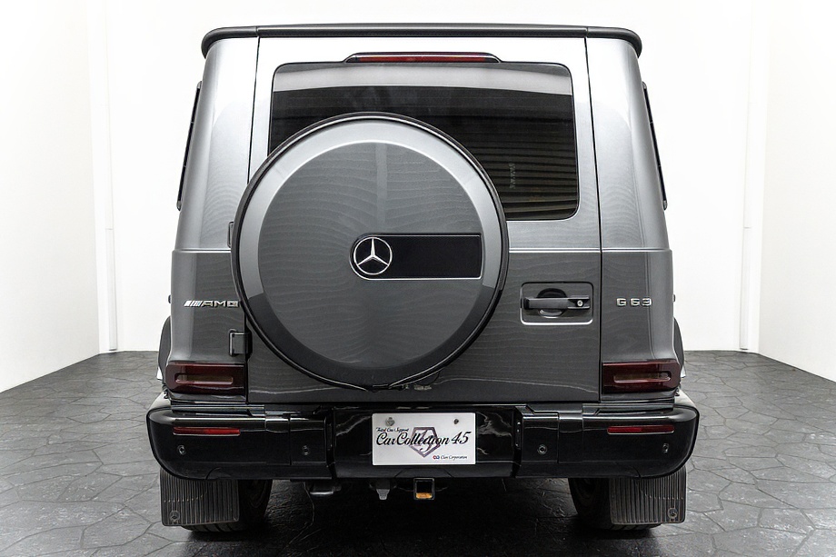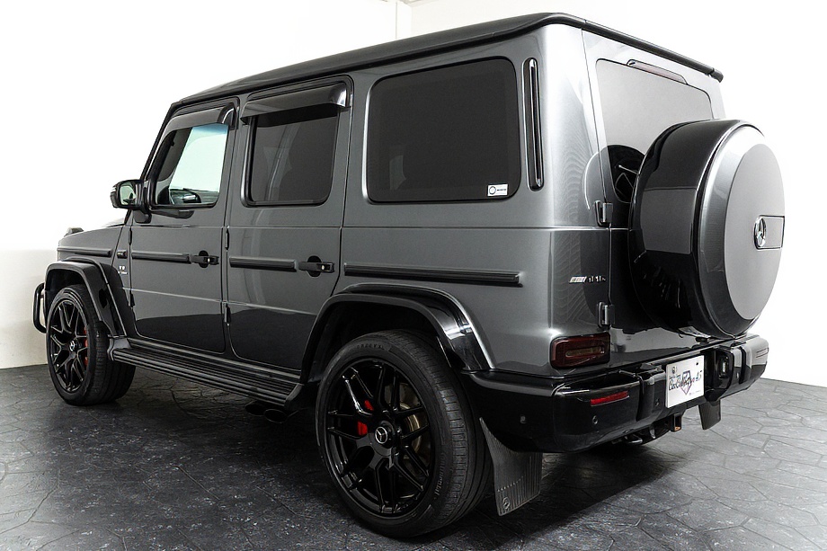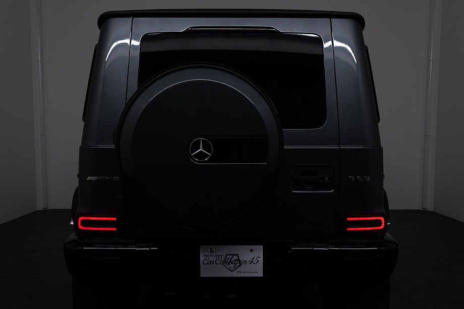 重厚なボディと絶妙に調和し、ラグジュアリーとスポーツの両立を感じさせるスタイルを演出します。さらにバンパーガードや専用ラゲッジラックも装備され、Gクラスらしいタフさと実用性も兼ね備えています。