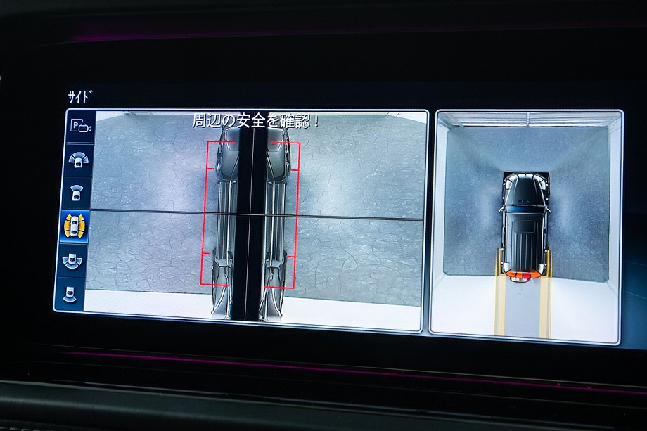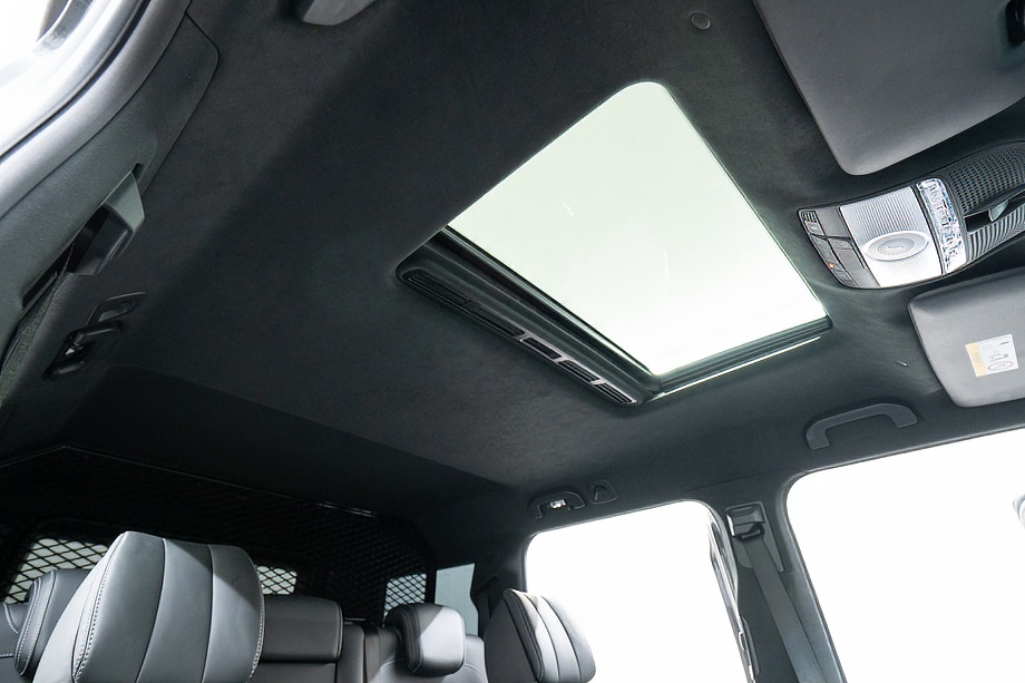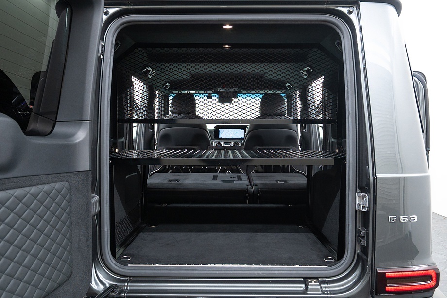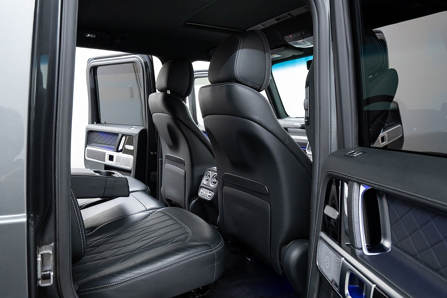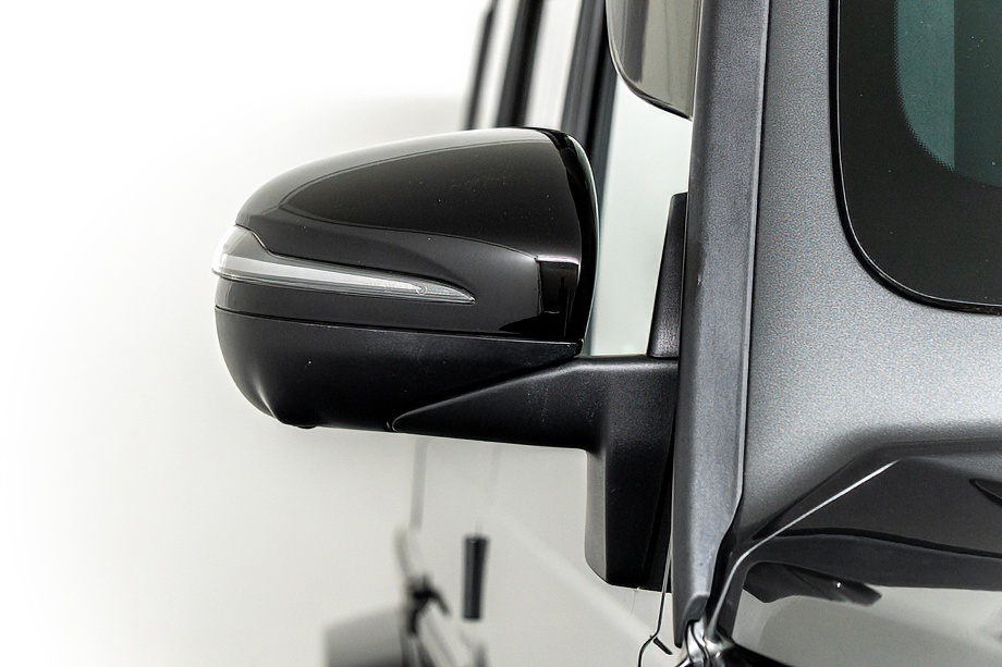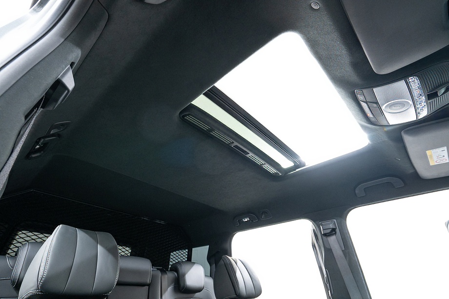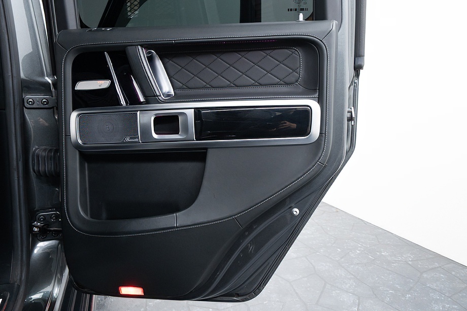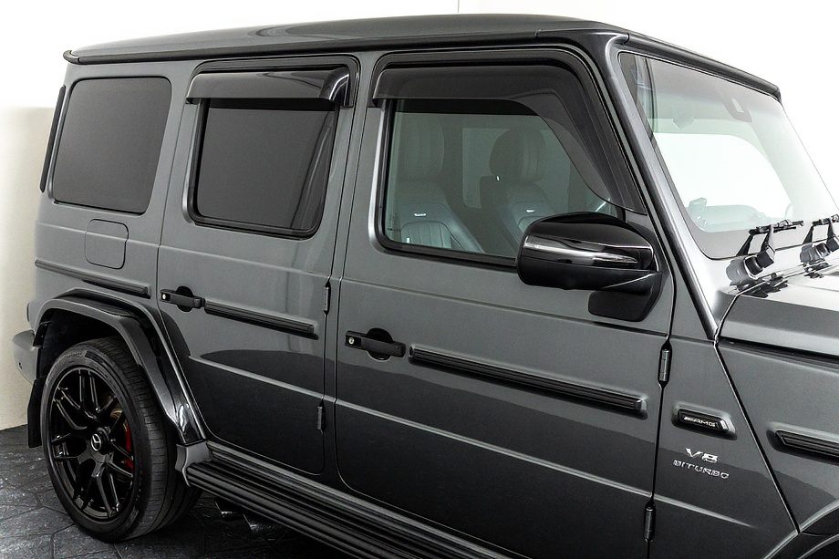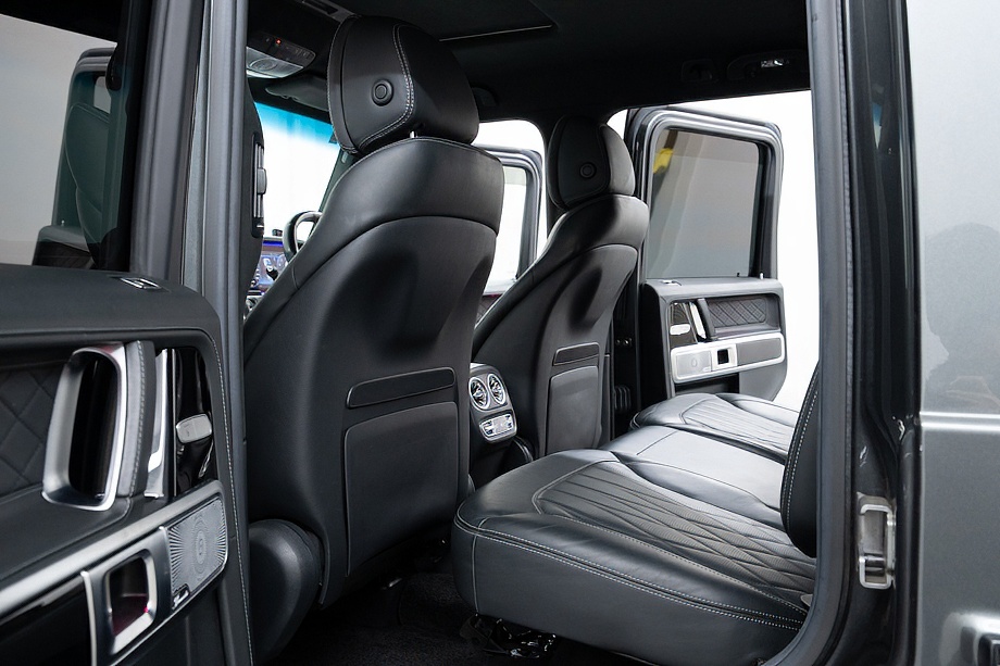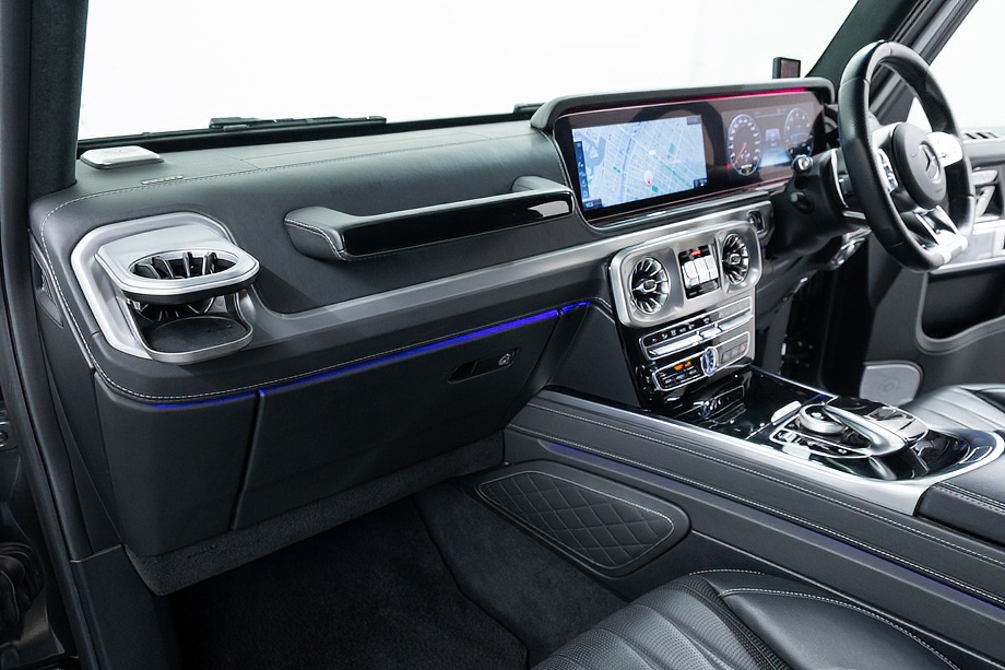 重厚なボディと絶妙に調和し、ラグジュアリーとスポーツの両立を感じさせるスタイルを演出します。さらにバンパーガードや専用ラゲッジラックも装備され、Gクラスらしいタフさと実用性も兼ね備えています。