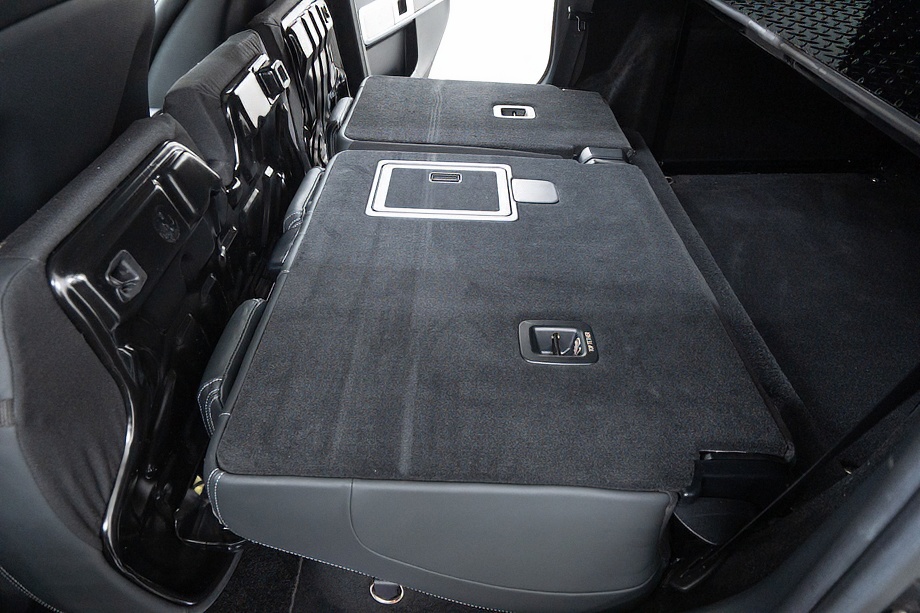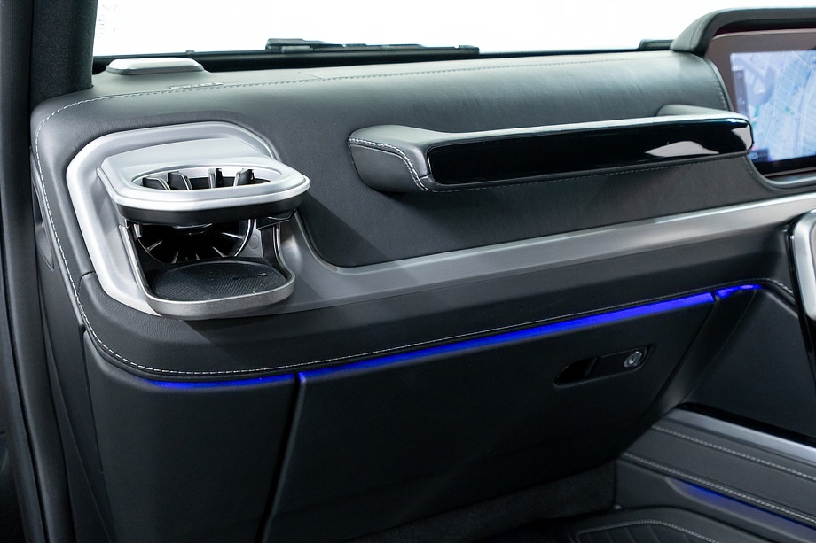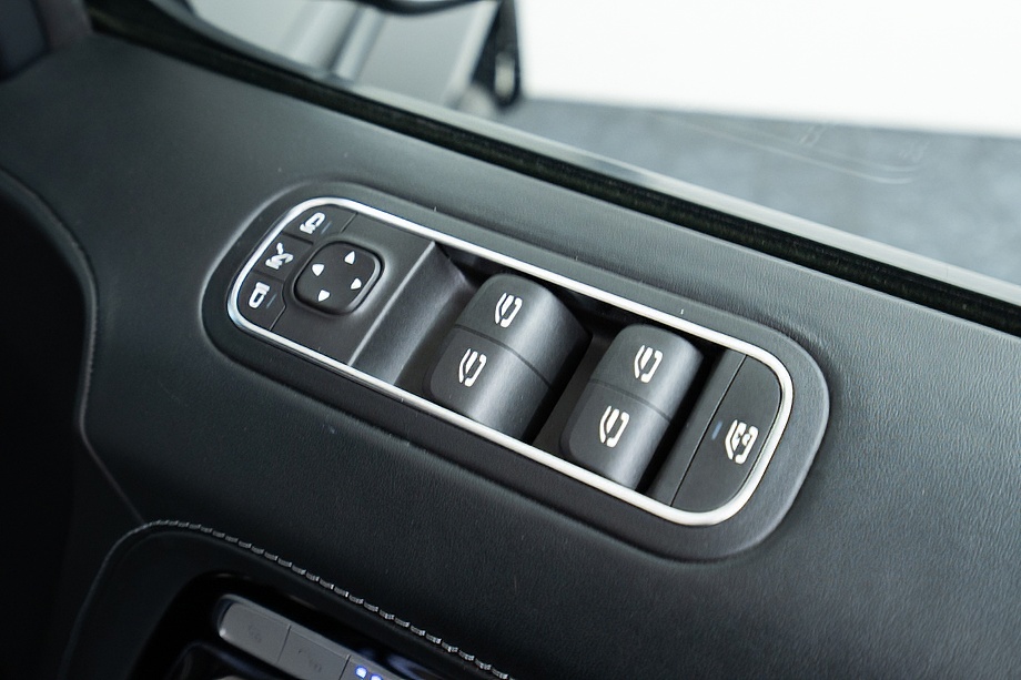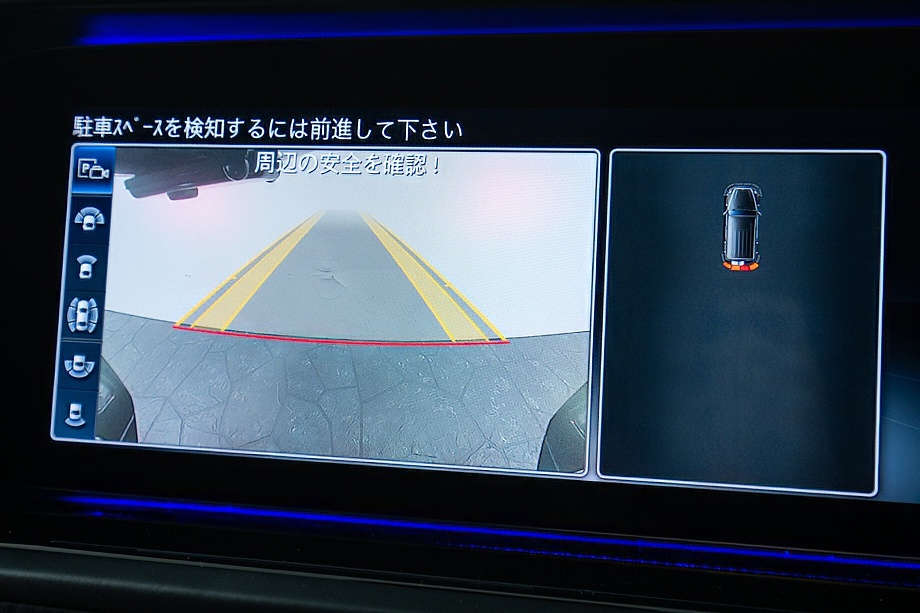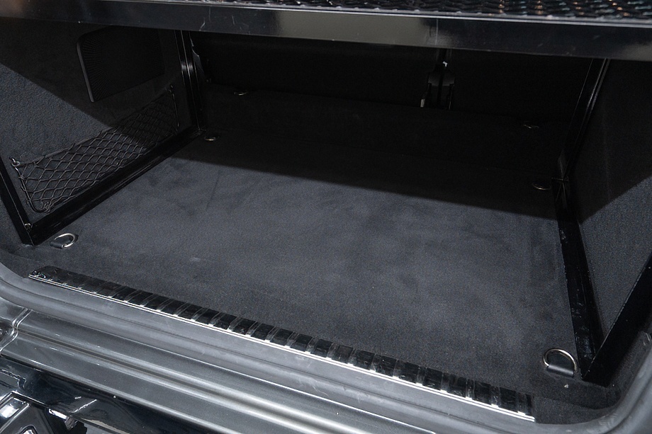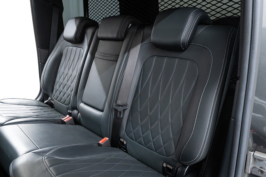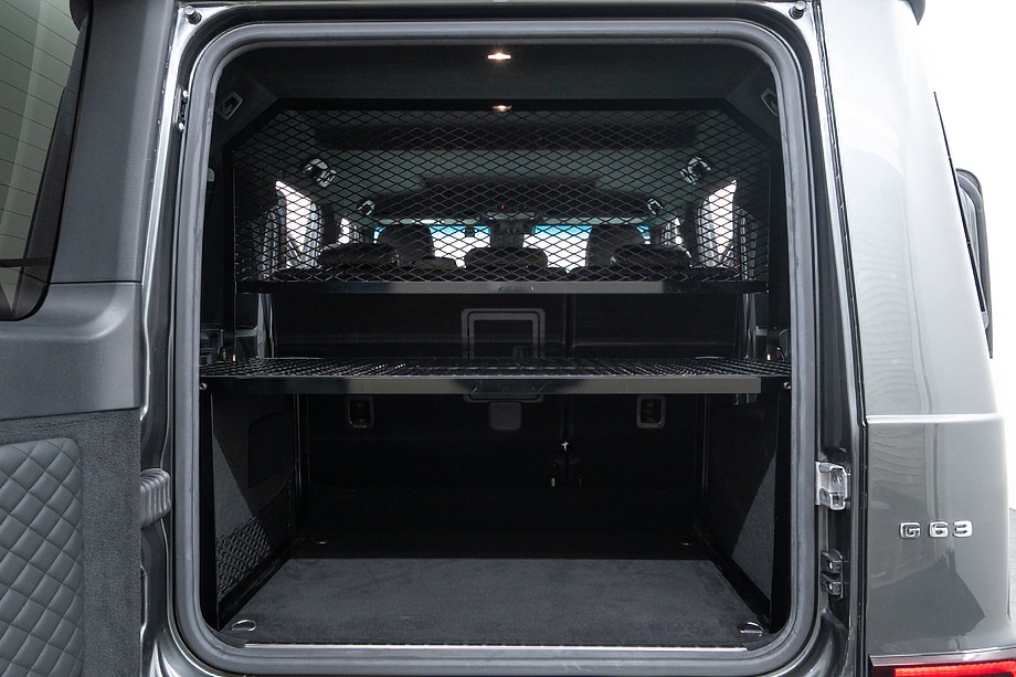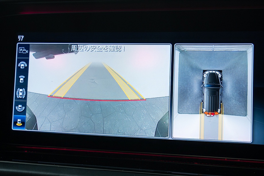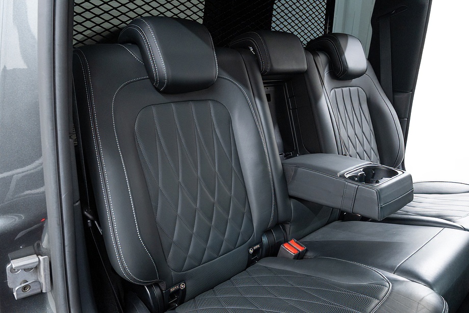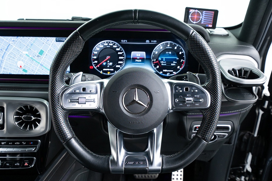 重厚なボディと絶妙に調和し、ラグジュアリーとスポーツの両立を感じさせるスタイルを演出します。さらにバンパーガードや専用ラゲッジラックも装備され、Gクラスらしいタフさと実用性も兼ね備えています。