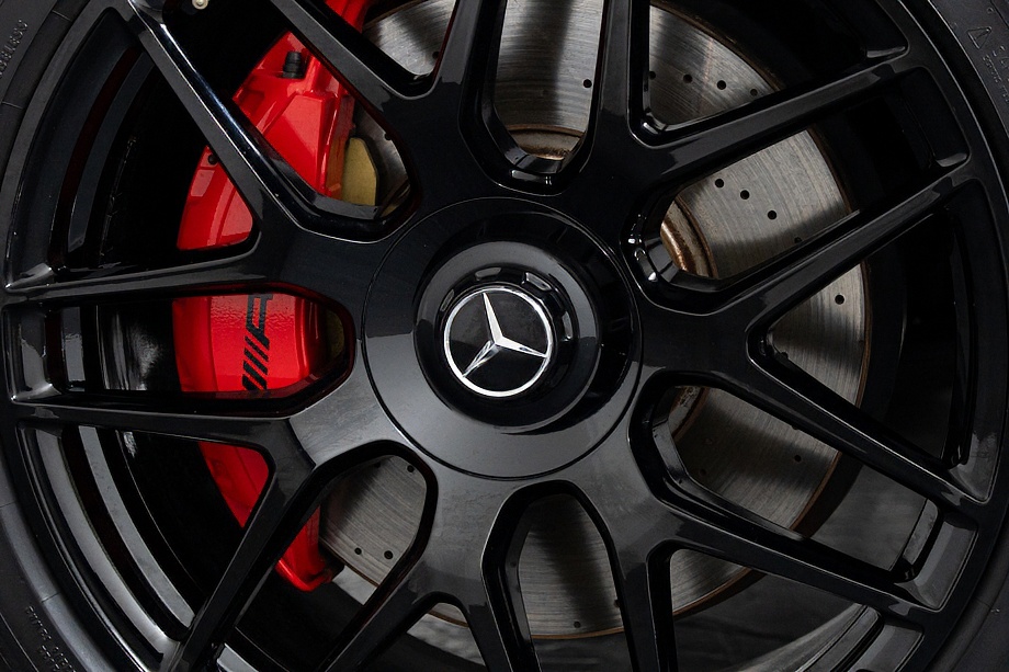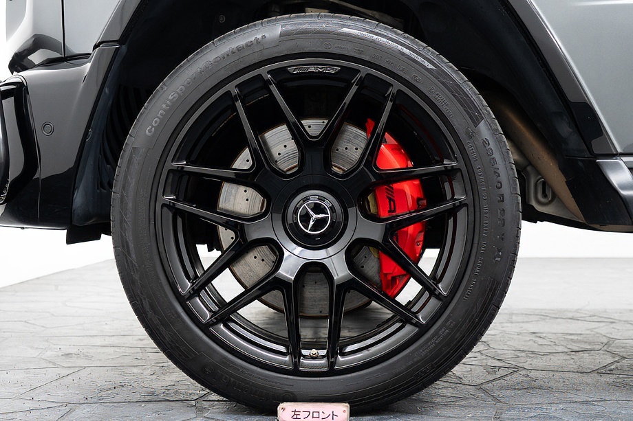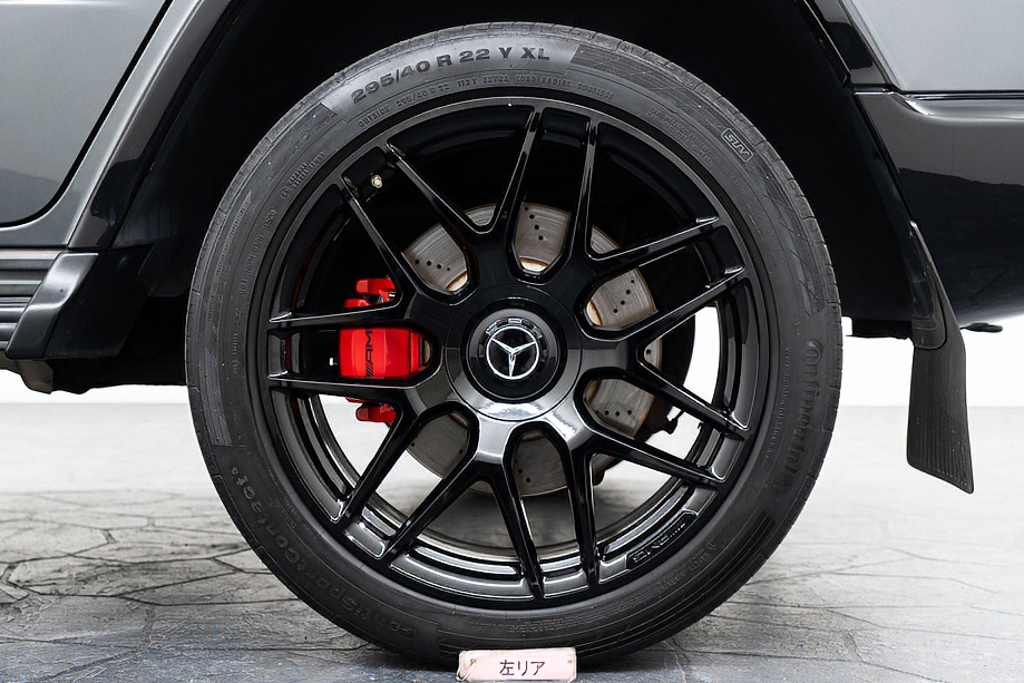 足元には、ブラックペイント仕上げのAMG22インチ・クロススポーク鍛造アルミホイール。