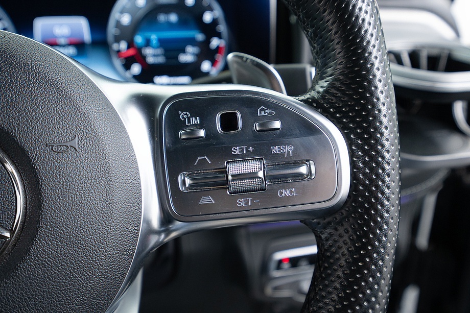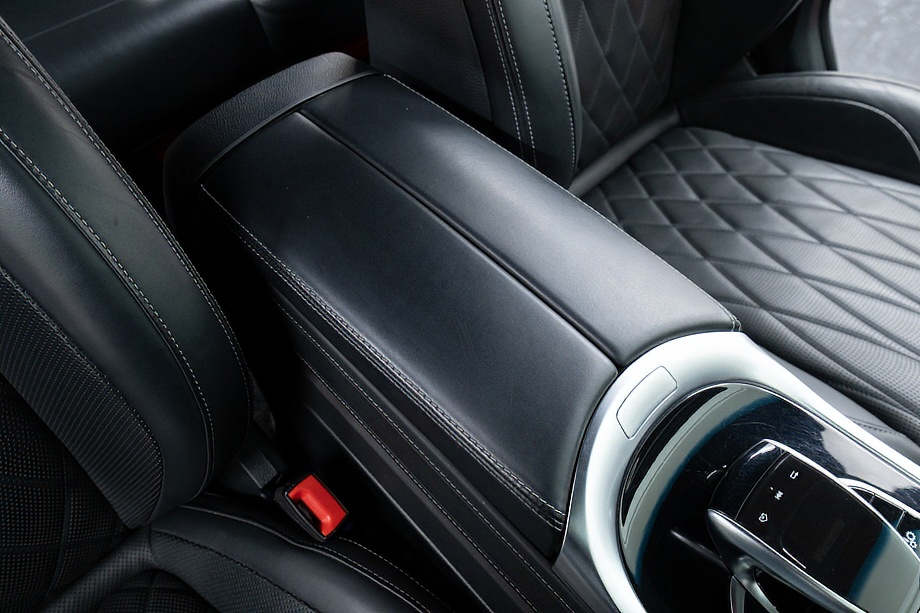 AMGレザーエクスクルーシブパッケージにより、ダイヤモンドキルティングが施されたブラックレザーシートを採用。視覚的な美しさだけでなく、身体をしっかり包み込む上質な座り心地を実現しています。さらにシートヒーターとベンチレーションを備え、季節を問わず快適なドライブをサポート。サンルーフから差し込む光が、キャビン全体をより開放的な空間へと変えてくれます。