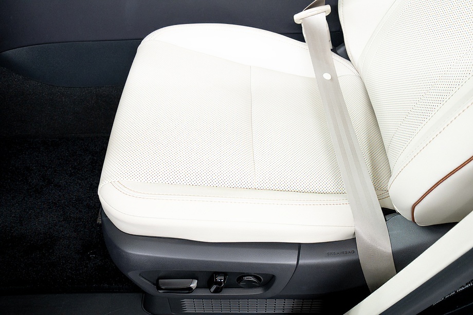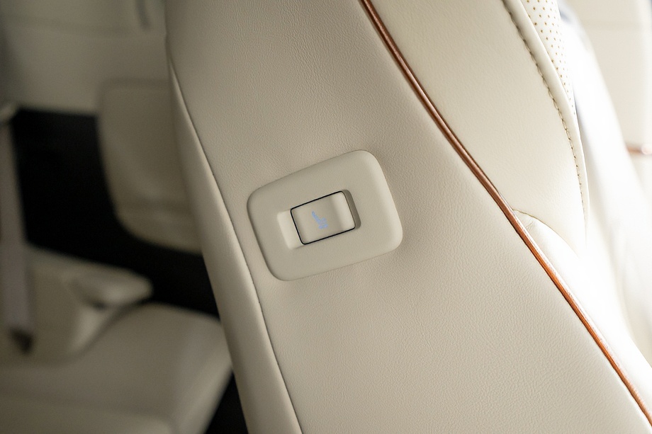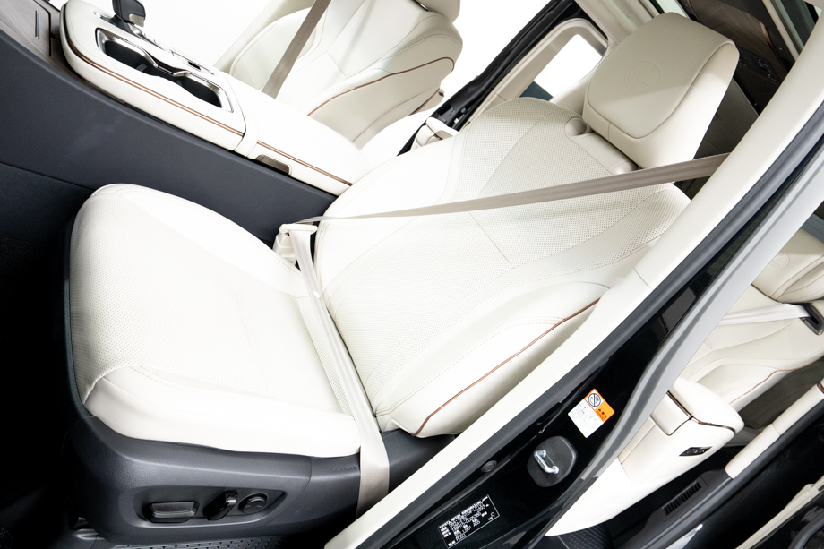 室内に目を向けると、白革シートが生み出す明るく上質な空間が広がります。柔らかく身体を包み込むシートには、ヒーター・ベンチレーションに加えマッサージ機能まで備わり、長距離移動でも自然と身体がリラックス。さらにステアリングヒーターやムーンルーフが、四季を通じて快適なドライブをサポートしてくれます。